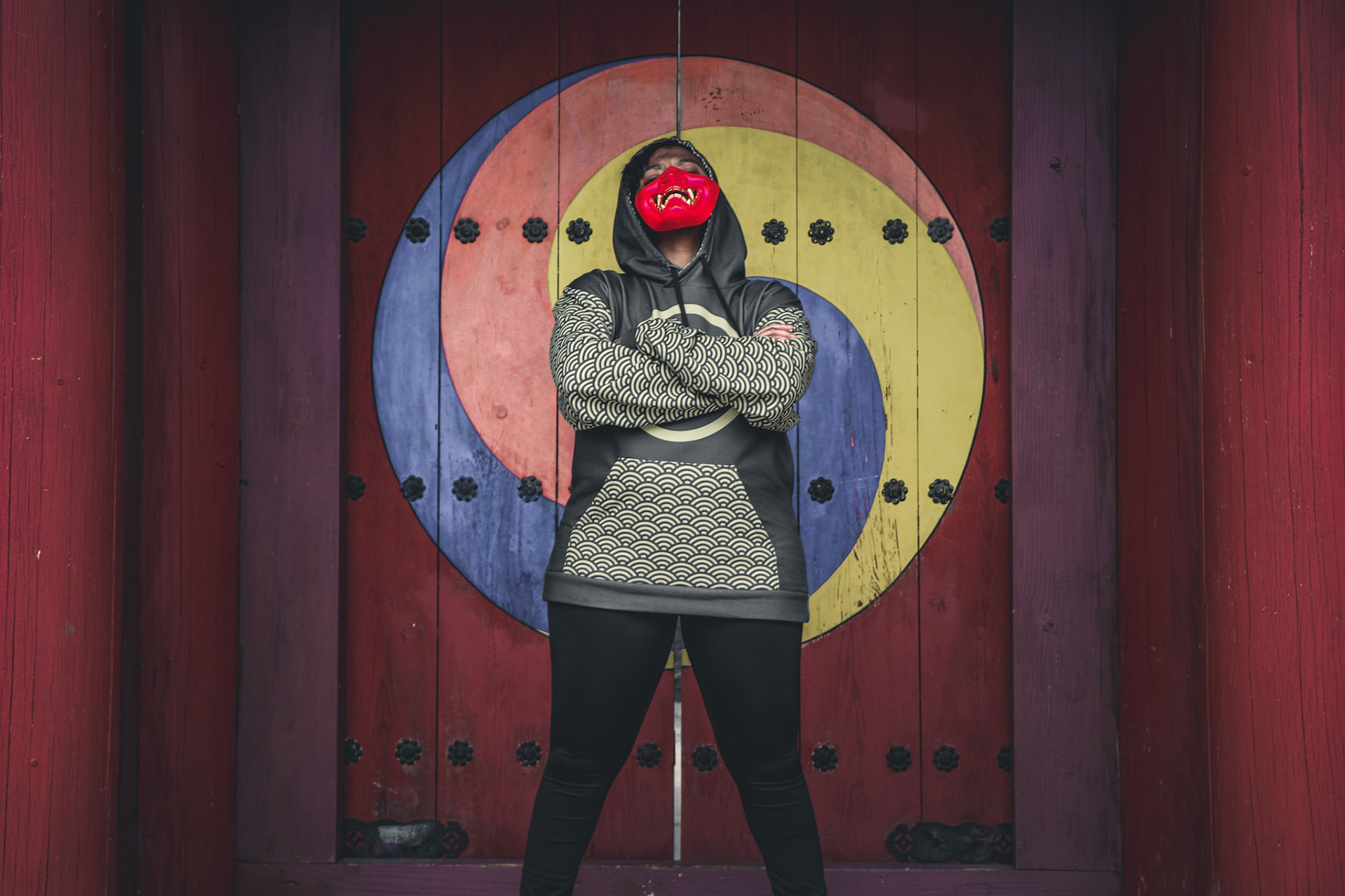 Seigaiha Samurai Hooded Sweatshirt Photoshoot